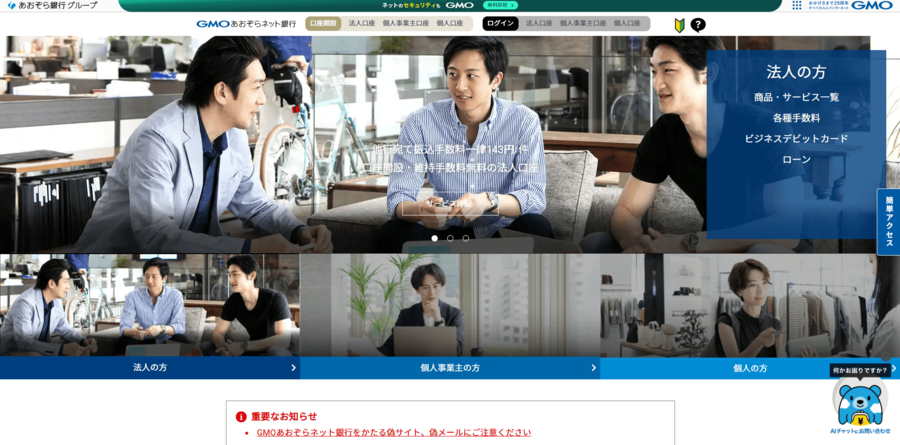 - 法人口座に特化した充実サービス&即日開設のスピード感
